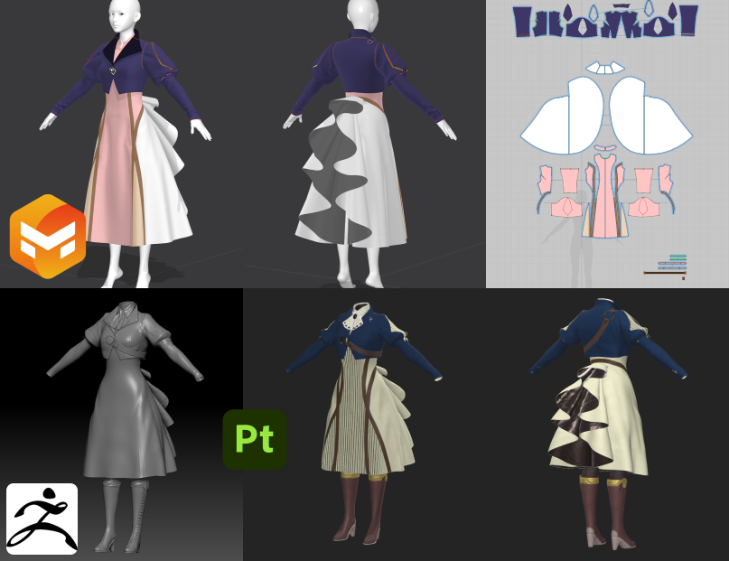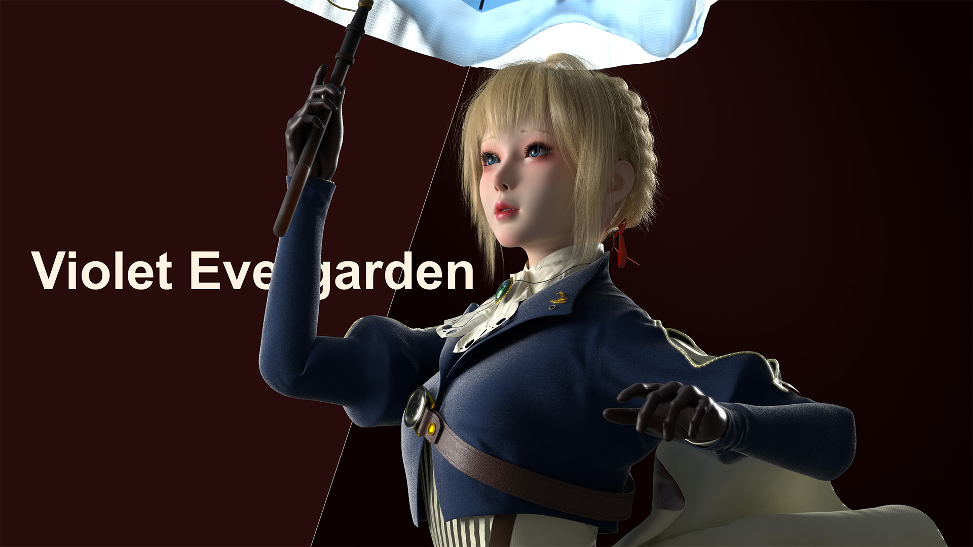 One of Violet’s most appealing features in the original work is her beautiful and flowing hair (although this meant a massive workload for the original illustrators and animators). To attempt to recreate this exquisite effect in Houdini, I built a node network in Houdini to achieve a high degree of customization, and created several HDAs to procedurally generate hair that conforms to the original design and simulates realistic movement.