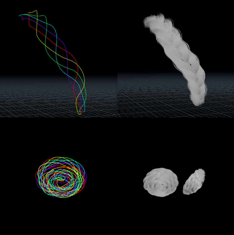Using specific parameters, it can generate braids of different styles. And variables can ramp along the curve.